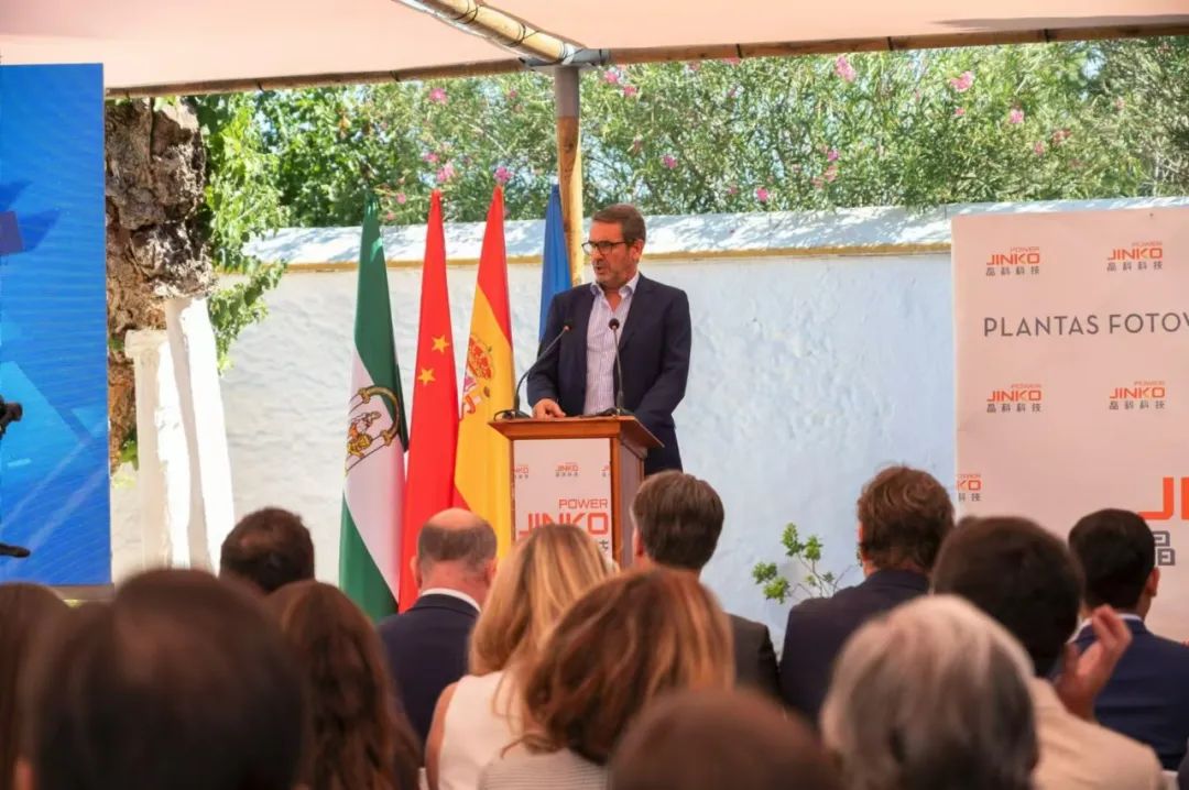 卡洛斯·加西亚·吉梅内斯介绍了安达卢西亚的产业发展与投资环境,他强调安达卢西亚是西班牙人口最多、经济总量前列、光伏资源最丰富的地区。而安特克拉项目是西班牙重点建设光伏项目,对推动西班牙当地绿色能源转型意义重大。未来,他期待在绿色能源领域与金年会科技深入交流、共商共赢,建立更加紧密的能源合作伙伴关系。