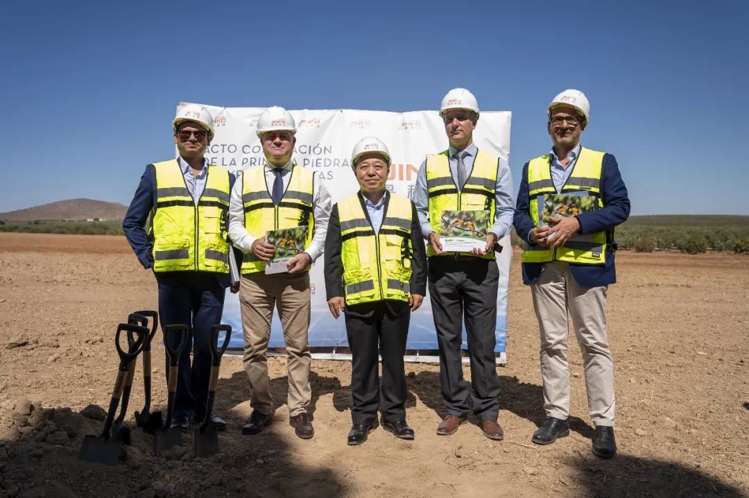 在奠基仪式上,叶建春省长、安达卢西亚大区工业代表卡洛斯·加西亚·吉梅内斯、金年会科技副总裁睿维等持握铁锹为项目奠基石培土。并按照当地传统,将装有当天报纸和硬币的盒子埋入项目工程现场。